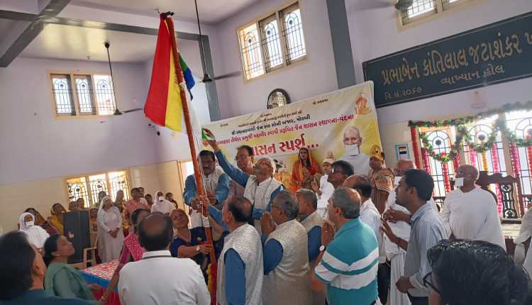 પુ. ગચ્છાધિપતી આચાર્ય સાધના સમ્રાટ ગુરુદેવ શ્રી ભાવચંદ્રજી સ્વામીની નિશ્રામાં ભગવાન મહાવીર સ્વામીના કેવલજ્ઞાન કલ્યાણક વૈશાખ સુદ ૧૦, તા. ૨૬ ને રવિવારે ૩૫૦ થી વધુ ભાવિકોની હાજરીમાં શાસન સ્પર્શનો ભક્તિસભર કાર્યક્રમ યોજાયો હતો જેમાં સંઘ રત્ન પ્રમુખ નવીનભાઈ દોશીએ ધ્વજા રોહણ કર્યું હતું