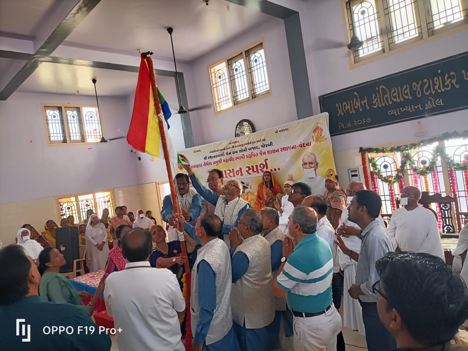 સાથે સંઘ દીપિકા ઉર્મિલાબેન મહેતા, યોગેશભાઈ મહેતા, હસમુખભાઈ દોશી, અશોકભાઈ મહેતા, કેતનભાઈ મહેતા, સમીર મહેતા, કમલેશભાઈ દફતરી, ભરતભાઈ સંઘવી વિ.એ જૈન ધ્વજને વધાવ્યા હતા ઉપસ્થિત શ્રાવક-શ્રાવિકાઓએ ૨૫૮૨ માં શાસન સ્થાપના વર્ષ નિમિતે શાસન, વંદના કરી જૈન ધર્મ, આગમ અને આદર્શોને અનુસરવા અને વફાદાર રહેવા સંકલ્પ કર્યો હતો