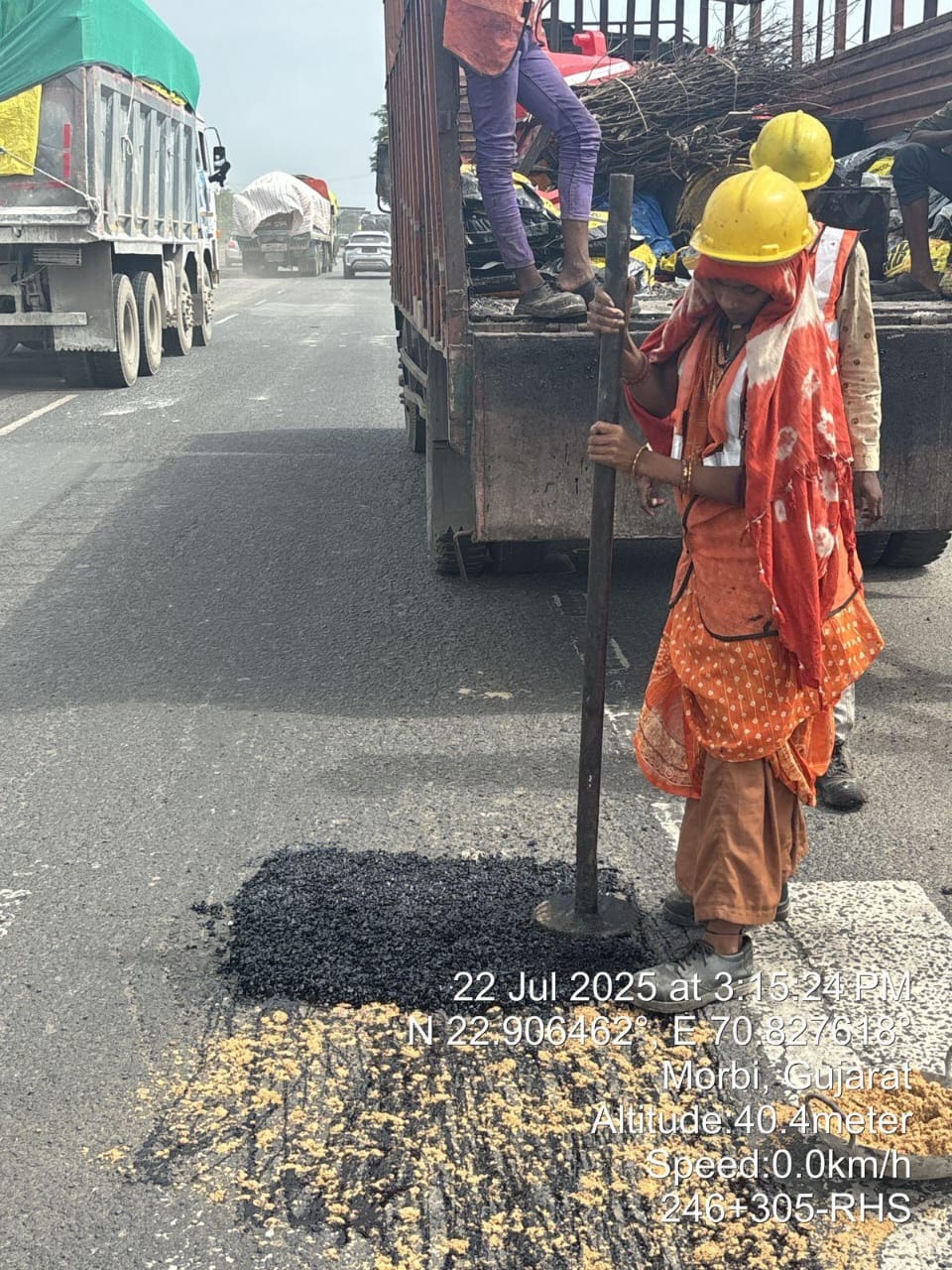 મોરબી જિલ્લામાં માર્ગ-મકાન વિભાગ તેમજ પંચાયત વિભાગ દ્વારા સુચારૂ સંકલન સાધી પ્રજા હિતમા રસ્તા રીપેરીંગની ગુણવત્તાયુક કામગીરી હાથ ધરાઇ છે તદુપરાંત નેશનલ હાઇવે ઓથોરિટી દ્વારા પણ મોરબી જિલ્લાના નેશનલ હાઈવે ૨૭ કે જે વાંકાનેરથી માળીયા રોડ છે ત્યાં રોડ રસ્તા રીપેરીંગની ગુણવત્તાયુક કામગીરી હાથ ધરાઇ હતી.