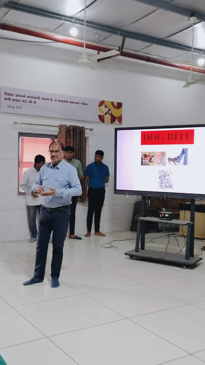 લક્ષ્મીનગર ગામે આવેલ શ્રી આર્યતેજ ઇન્સ્ટિટ્યૂટ ઑફ નર્સિંગ કોલેજ ખાતે તારીખ 20 NOVEMBER DOG BITE AWARENESS PROGRAM કાર્યક્રમનું આયોજન કરવામાં આવ્યું હતું. કાર્યક્રમની શરૂઆતમાં પ્રાર્થના કરવામાં આવી. ત્યારબાદ સંચાલક દ્વારા ઉપસ્થિત મહેમાનો અને વિદ્યાર્થીઓનું સ્વાગત કરીને કાર્યક્રમના હેતુ વિશે સંક્ષિપ્ત માહિતી આપવામાં આવી. આ કાર્યક્રમમાં નર્સિંગ કોલેજના ડાયરેક્ટર શ્રી રમેશ કૈલા સાહેબે સ્વાગત ભાષણ આપ્યું હતું.