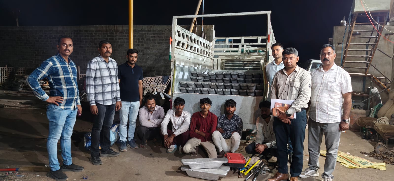 અન્ય અરોપોઈ વિપુલ રાવજી મકવાણા, કિશન વેલજી ધોરીયા, સામજી બચુભાઈ કુમખાણીયા, જગાભાઈ હેમુભાઈ મકવાણા અને કિશન પ્રેમજી ગોરિયા એમ પાંચ ઇસમોના નામો ખુલ્યા છે પોલીસે આરોપીઓ પાસેથી ૭ મોબાઈલ કીમત રૂ ૩૫,૦૦૦ એલ્યુમીનીયમ ઢાળિયા નંગ ૧૫૭ વજન આશરે ૨૬૫૦ કિલો કીમત રૂ ૯,૭૫,૨૦૦ વાયર કાપવાના કટ્ટર નંગ ૦૨ કીમત રૂ ૧૨૦૦, બેલ્ટ પટો નંગ ૦૧ કીમત રૂ ૨૦૦ ઇલેક્ટ્રિક ગ્રાઈન્ડર કીમત રૂ ૧૦૦૦, ઇલેક્ટ્રિક જમ્પર નંગ ૦૨ કીમત રૂ ૧૦૦૦ અને બોલેરો પીકઅપ કીમત રૂ ૪ લાખ સહિત કુલ રૂ ૧૪,૧૩,૬૦૦ નો મુદામાલ કબજે લીધો છે