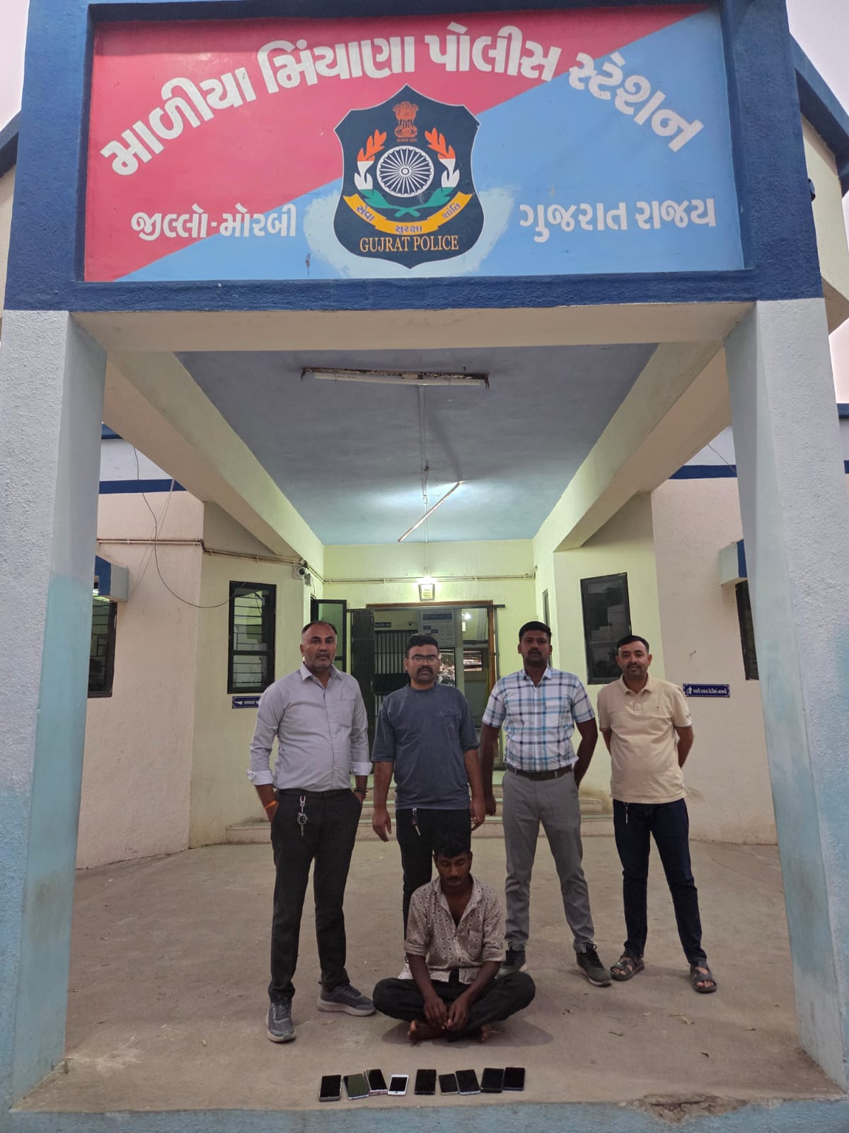 માળિયામાં મોબાઈલ દુકાનમાંથી ૦૯ મોબાઈલ ચોરી કરનાર ઇસમ મુદામાલ સાથે ઝડપાયો