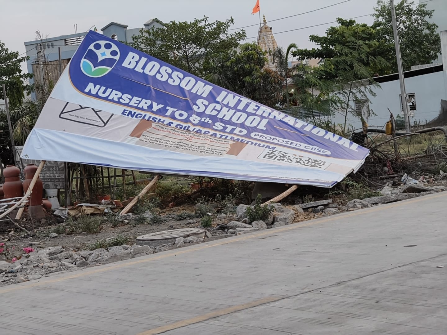 વાવડી ચોકડીએ હોડીંગ્સ ઉડ્યા, સોલાર પેનલોમાં નુકશાની