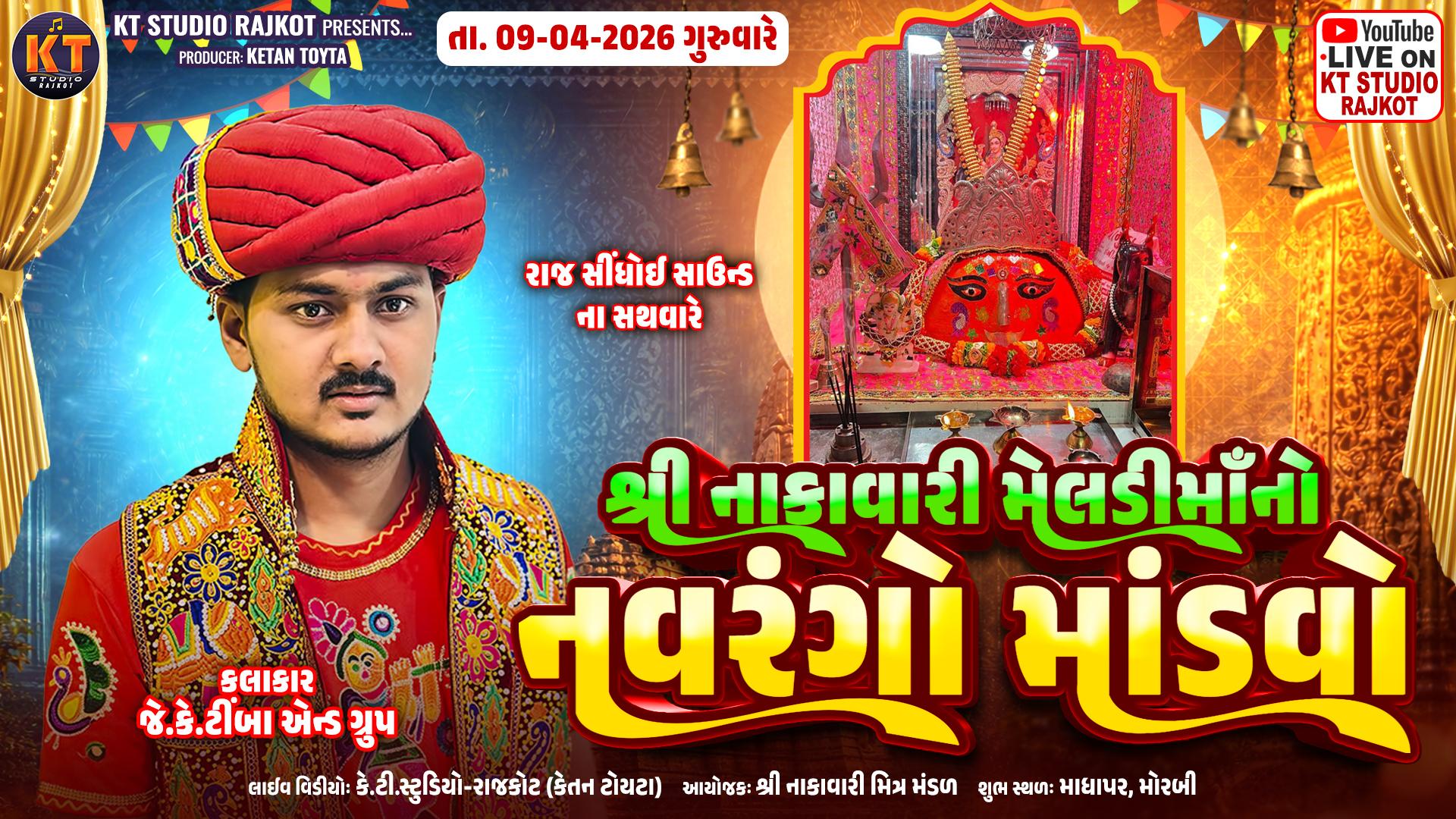 શ્રી નાકાવાળી મેલડી માતાજીનો નવરંગો માંડવો અને નવચંડી યજ્ઞમાં તા. -૦૮ ને બુધવારે સવારે શુભ ચોઘડિયે નવચંડી યજ્ઞ યોજાયો હતો તેમજ આજે ૦૯ ના રોજ સવારે થાંભલી રોપણ અને ભુવાના સામૈયા કરવામાં આવ્યા હતા આજે સાંજે ૬: ૩૦ કલાકે માધાપર સતવારા જ્ઞાતિ વાડી, રામજી મંદિર પાછળ મોરબી ખાતે મહા પ્રસાદ યોજાશે અને આવતીકાલે તા. ૧૦ ના રોજ શુક્રવારે થાંભલી વધામણા કરવામાં આવશે