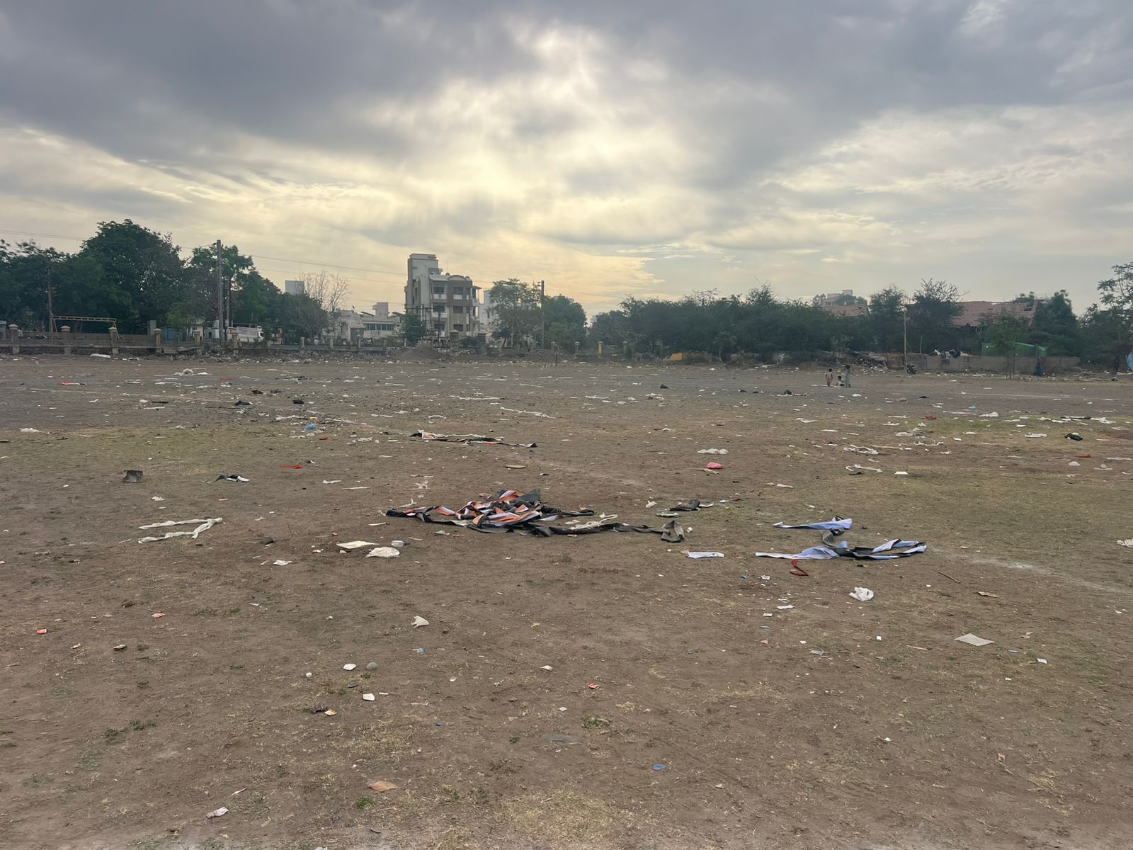 મોરબીના એલ ઈ ગ્રાઉન્ડ ખાતે તાજેતરમાં એક સરકારી કાર્યક્રમ યોજાયો હતો જે પૂર્ણ થયા બાદ ગ્રાઉન્ડમાં કચરા જ જોવા મળે છે એકમાત્ર ગ્રાઉન્ડ પણ રમતવીરો માટે છોડવામાં આવતું નથી સરકારી કાર્યક્રમો અવારનવાર થતા રહે છે જેથી યુવાનોને તકલીફ પડી રહી છે તો કાર્યક્રમ પૂર્ણ થયા બાદ સફાઈ પણ કરવામાં આવતી નથી આ મામલે અગાઉ પણ યુવાનોએ તંત્રને રજૂઆત કરી હતી જોકે પરિણામ શૂન્ય જોવા મળે છે જેથી યુવાનો એકમાત્ર ગ્રાઉન્ડને સરકારી કાર્યક્રમોમાં ઉપયોગ ના લેવાય અને જો ઉપયોગમાં લેવાય તો કાર્યક્રમ પૂર્ણ થયા બાદ યોગ્ય સફાઈ કરવામાં આવે તેવી માંગ કરી રહ્યા છે કાર્યક્રમોના તંબુ માટે ખાડા ખોદવામાં આવે છે જેથી ગ્રાઉન્ડની હાલત બદતર થઇ ગઈ છે